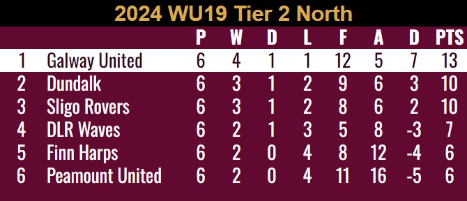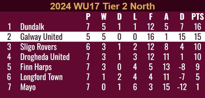 The result puts Galway United WU17 on 15 points for the season with two games less played and one point behind league leaders Dundalk. The two sides meet on Saturday the 28th September at Oriel Park, Dundalk.