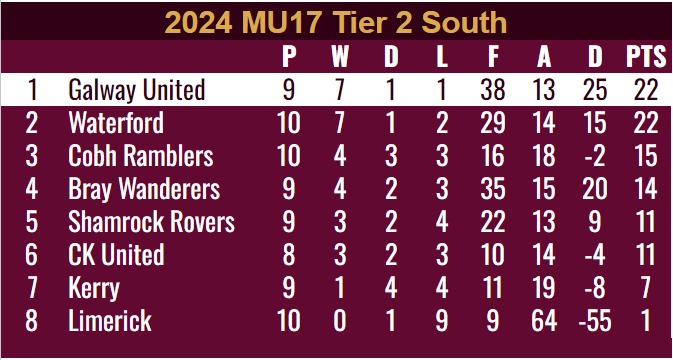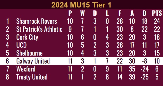 The Galway United MU15’s side do not play again until the 5th of October where they travel to Roadstone Academy to face off against Shamrock Rovers.