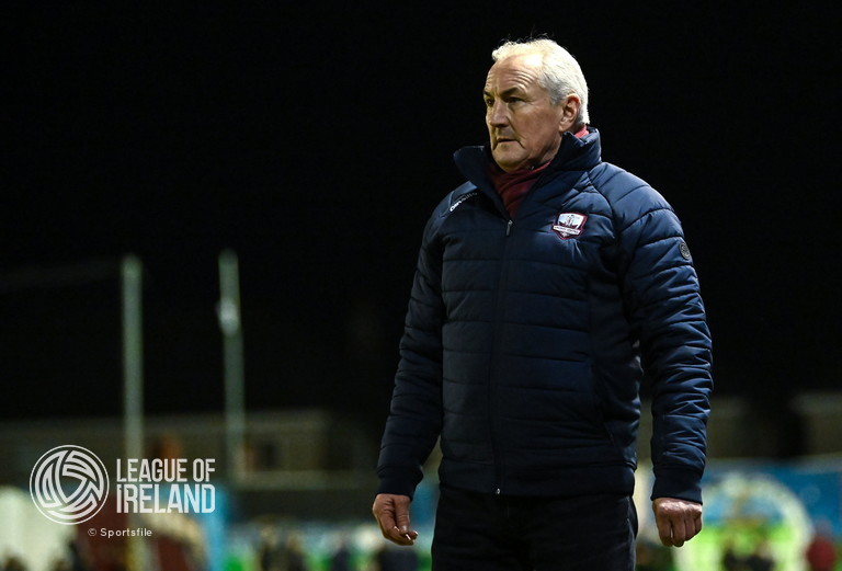21 February 2025; Galway United manager John Caulfield during the SSE Airtricity Men’s Premier Division match between Galway United and St Patrick’s Athletic at Eamonn Deacy Park in Galway. Photo by Piaras Ó Mídheach/Sportsfile