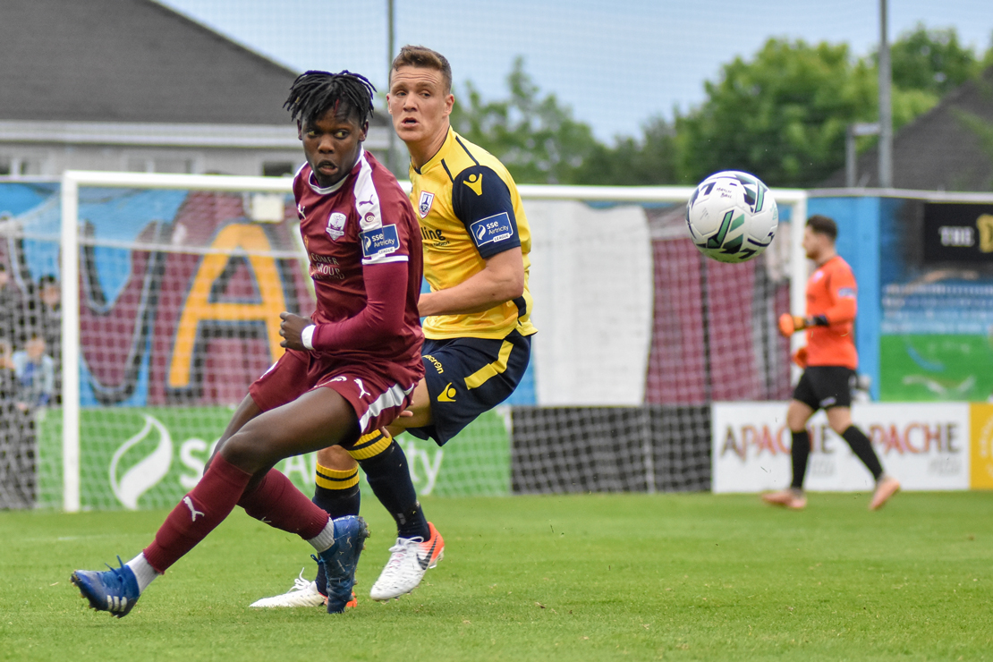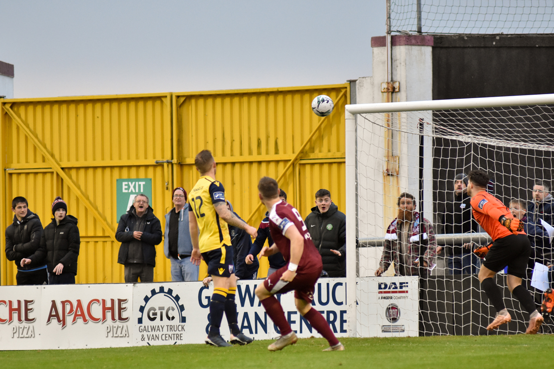 Longford goalkeeper Lee Steacy produced a save from the top drawer to deny Cian Murphy. The defender’s header looked destined for the top corner, but somehow Steacy got an outstretched hand to the ball.